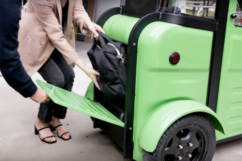 The design features removable doors so the driver can enjoy the outdoors in good weather. On cold days, the closed cabin will remain quite comfortable thanks to the heat generated by the electric motor. Moreover, the company ensures that the three-wheeler can handle snowy conditions perfectly if it is equipped with the right winter tires. A small storage compartment behind the seat back will take care of transportation needs. It will fit a few grocery bags or a backpack, and can be accessed via the trunk lid at the rear.