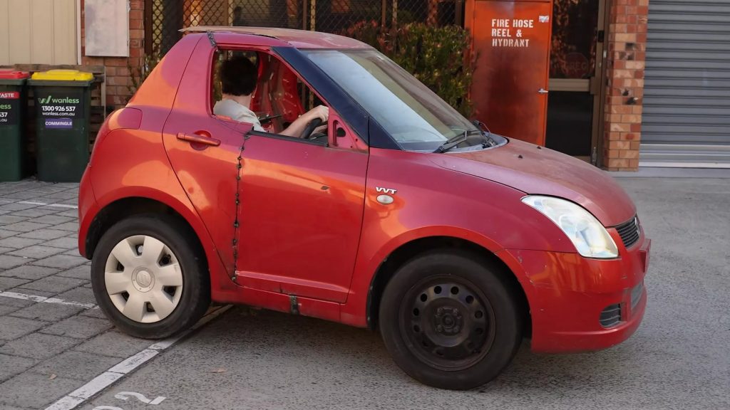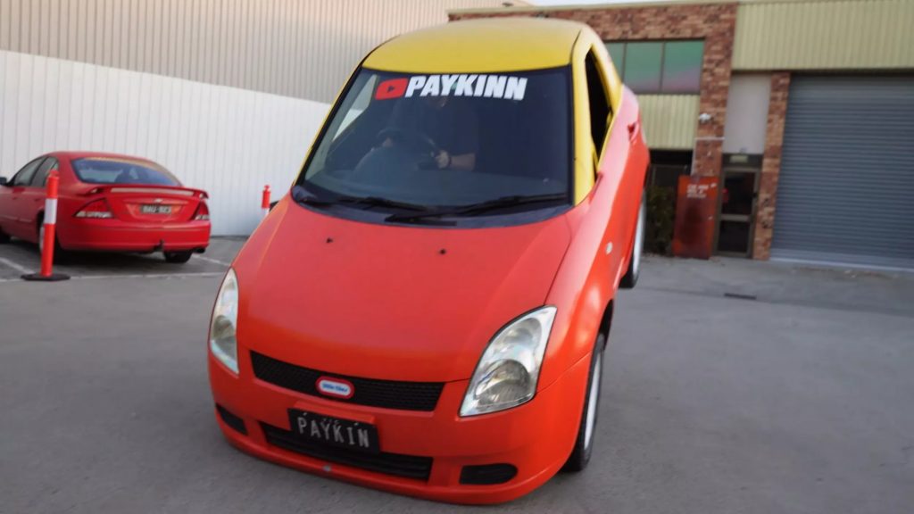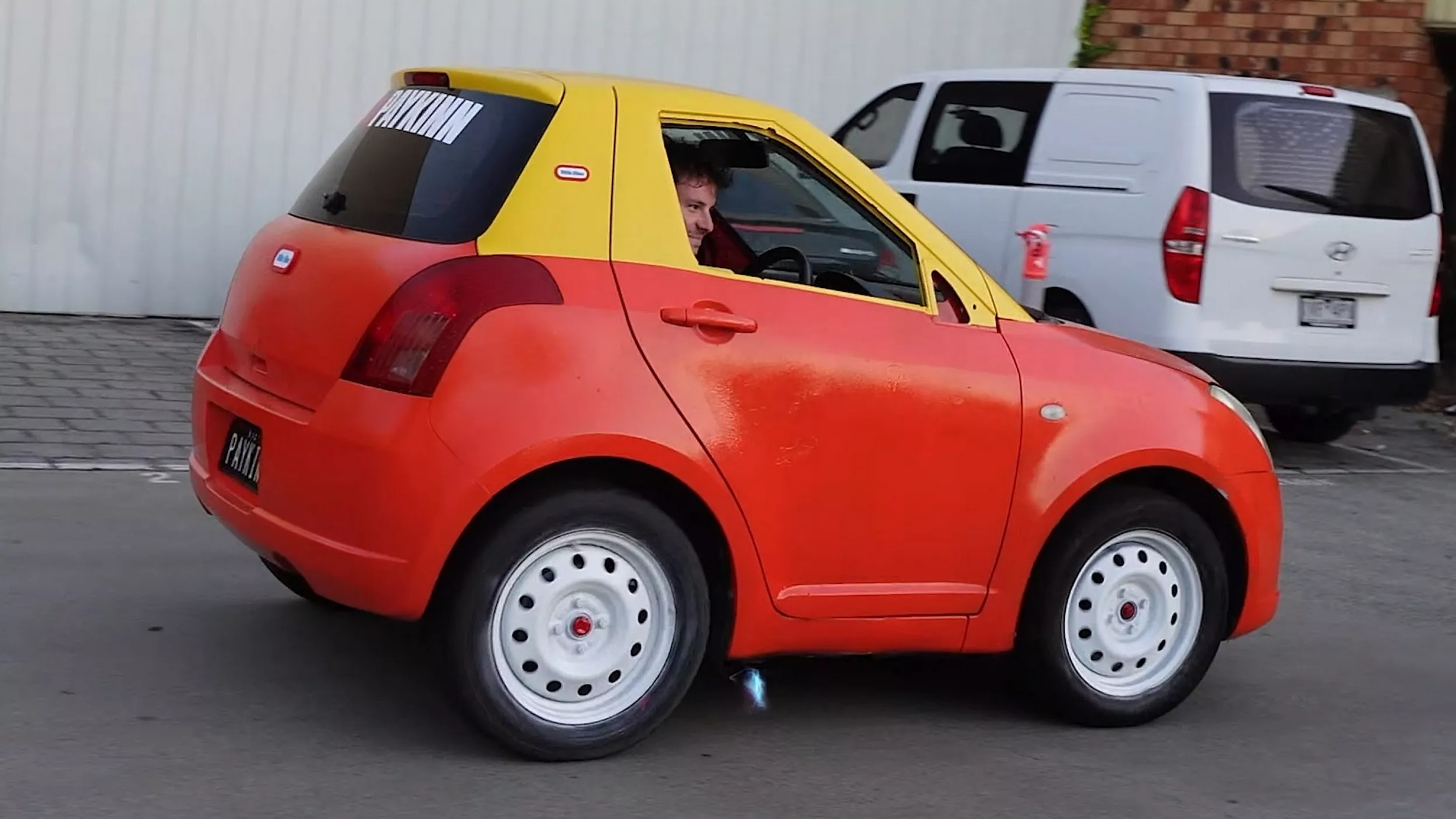 Life’s too short for boring cars — and apparently for factory wheelbases as well. Australian YouTuber Nathan Paykin has taken automotive nostalgia to gloriously ridiculous extremes, turning a 20-year-old Suzuki Swift into a full-size, drivable version of the Little Tikes Cozy Coupe. Yes, it even shoots flames.