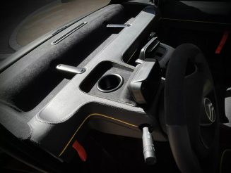 The car was a gift for the owner’s 16-year-old son, and the Italian coachbuilder was asked to create a black theme with a combination of matte and gloss finishes, paired with contrasting yellow accents.