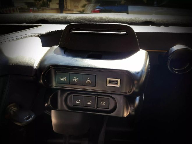 The gear selector has been moved to the dashboard, creating an extra storage compartment. There are no fancy infotainment features, however, and the lack of air conditioning remains a significant omission. The thick, luxurious floor mats are a finishing touch.
