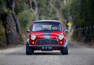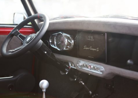 That’s 466 horsepower more than the standard 1974 Mini 850, so the amount of chassis upgrades is also quite large. Changes include more powerful Wilwood brakes and a completely redesigned suspension.