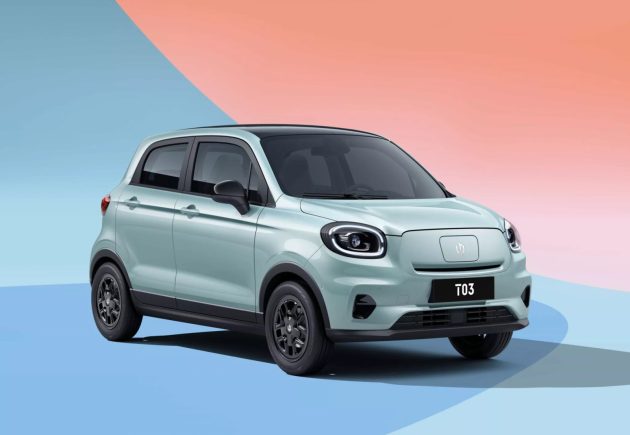 The T03 is a tiny electric car even smaller than the Mitsubishi Mirage or Hyundai i10. Unlike those cars, it is powered by electricity instead of gas.