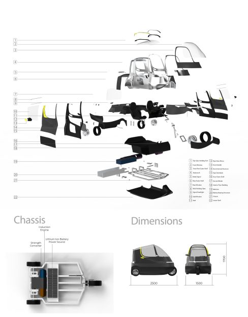 Going further into the design process, Edibe devised an EV that offers several advantages for both users and operators. The lower half of the Campus 2023, for example, is a frame and a wide battery array that spans the width of the car.