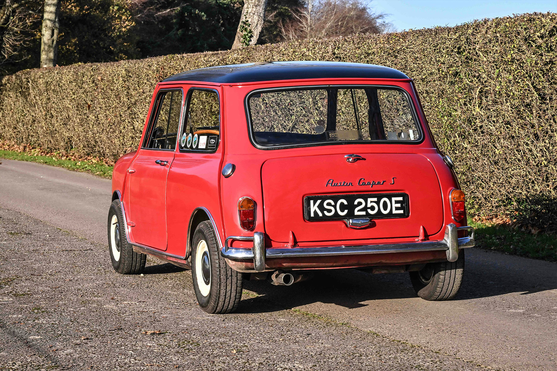 This Austin Mini Cooper S is a highly desirable slice of 1960s performance history, distinguished by an array of period-correct Special Tuning and Downton upgrades. It is powered by a professionally rebuilt 1,330cc transverse four-cylinder engine—believed to be the original matching-numbers unit—paired with a close-ratio, straight-cut four-speed manual gearbox driving the front wheels.
