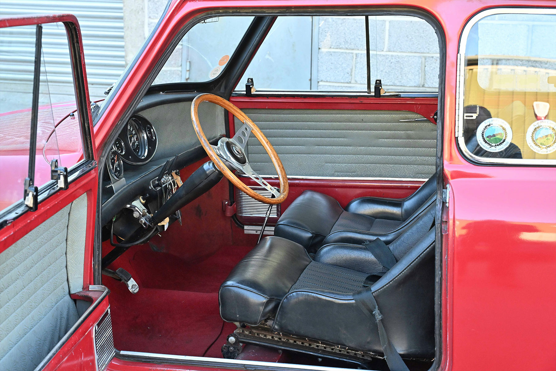 Its specification includes competition-grade ‘S’ Hydrolastic blue-band displacer units, a Downton Stage Two cylinder head, a Special Tuning close-ratio straight-cut gear set housed in the correct 22G333 casing, and twin H4 1.5-inch carburettors.