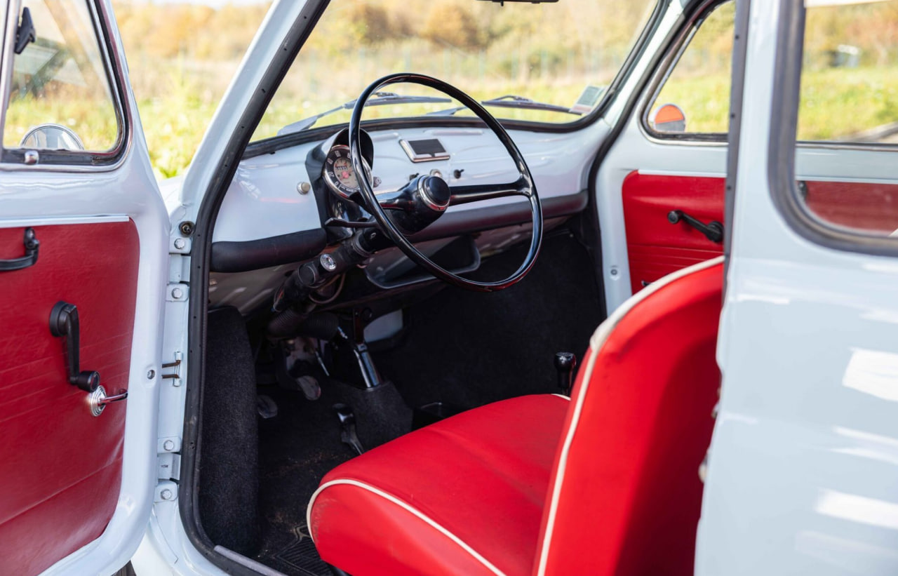 Unveiled at the 1965 Geneva Motor Show, the Fiat 500F addressed several drawbacks of the outgoing D version. It introduced front-hinged doors, a wider windshield, and a more refined, modernised cabin. Its lively 18-hp twin-cylinder engine also gave the little Italian city car a renewed sense of energy, and period journalists praised it as the moment when the Nuova 500 truly came into its own.