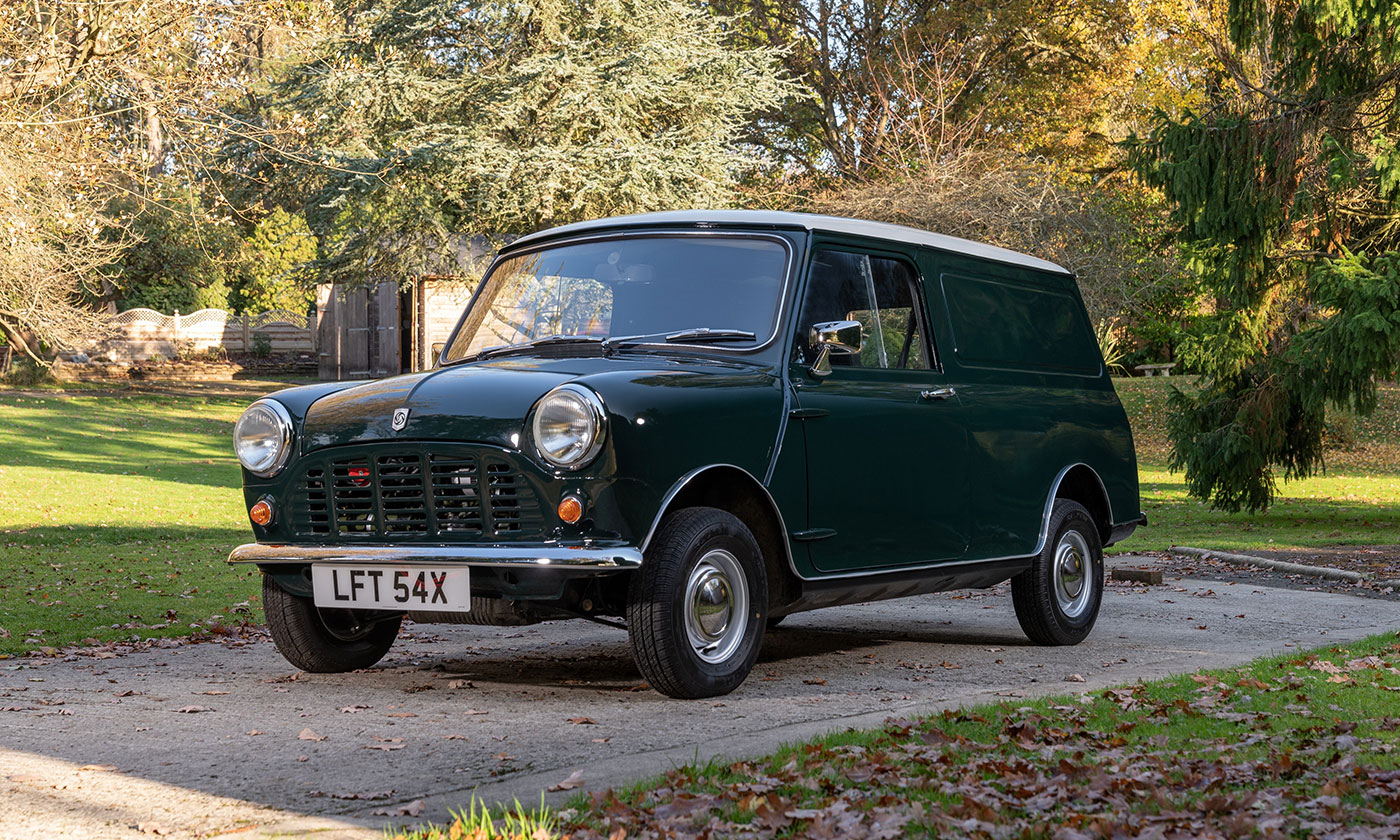 The van offered here was purchased by its current owners through Historics in 2020 and is an especially appealing example. Unlike the standard 848cc Mini Van, it uses the larger 998cc engine, and its interior retains the L-pack houndstooth seat centres that pair neatly with the green bodywork.