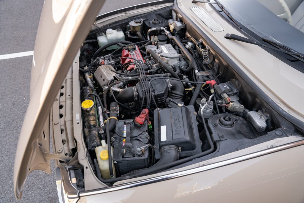 The 12″ steel wheels wear white disc covers with polished hubcaps and are fitted with Bridgestone Sneaker tires. Suspension consists of MacPherson struts up front and an independent four-link rear with coil springs. Braking is handled by front discs and rear drums.