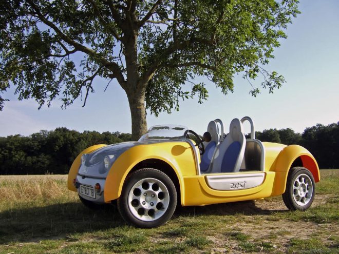 French company Acrea was created in 2005. The first and the only model Zest debuted in Paris in 2006. These tiny and very simple roadsters with 2- or 4-seats have original oldshool style. The Zest is officially a quadricycle, and so can legally be driven on a motorcycle license in much of Europe.