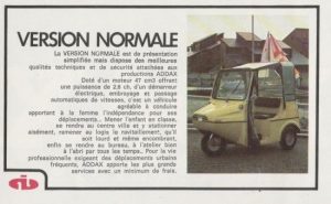 The Normale was the base version in the range. It was fitted with a 47 cc 2.6 hp engine. The standard equipment included an electric starter, automatic clutch and shifting gear. It was perfect to “go to the town center and easily to park there” according to the official brochure.