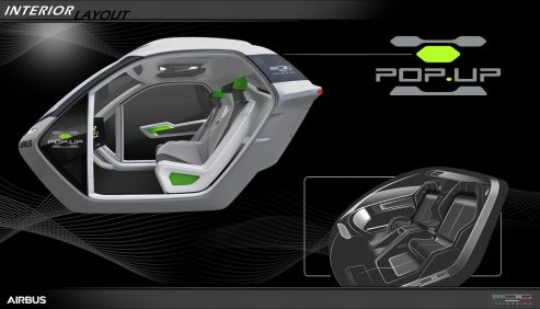If congestion threatens on the way to the destination, the cabin is coupled with the 5 m × 4.4 m flight module with four rotors. This should allow the vehicle to start vertically. Passengers do not need an active flying experience because they should automatically be guided to their destination. After that Airbus Pop.Up automatically moves to a charging station and waits for the next customers.
