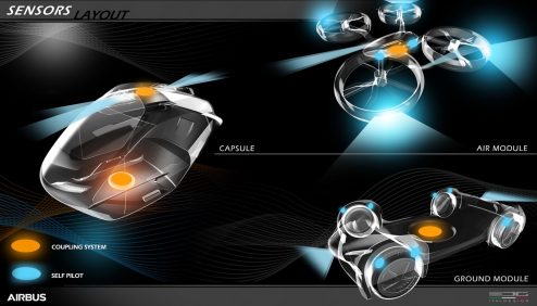The idea is: passengers plan and book their journey with an app. The system will then calculate the best transportation options depending on user capabilities, scheduling, traffic conditions and costs. Depending on the capsule is provided with the driving or flight module. Two passengers will be able to sit in the 2.6 m long, 1.4 m high and 1.5 m wide carbon fiber cabin.