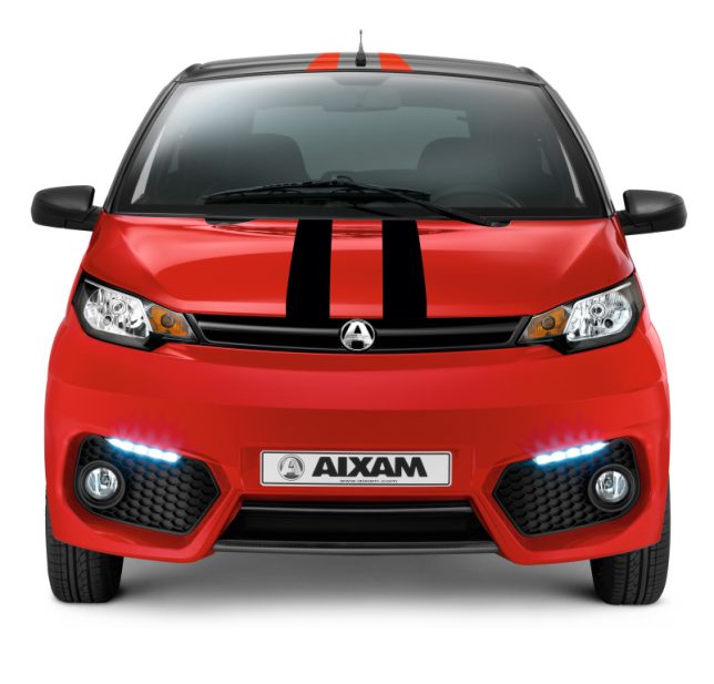 Another version in the new City range is the AIXAM City S. To create sporty look designers use several new details, such as 14″ White alloy wheels, twin exhaust pipes and colored interior panels. The AIXAM City S is available in Red, Blue and Black colors with White strips.