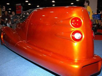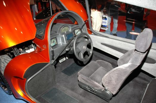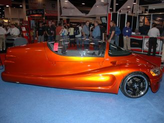 The aerodynamic glassfibre body seated two in tandem, but it was quite big at 4420 mm (174in) long and weighed 635 kg (1400lb). The car’s creator, George Parker, planned to put it into production in British Columbia, Canada, but investment had not been forthcoming as of the time of writing.