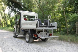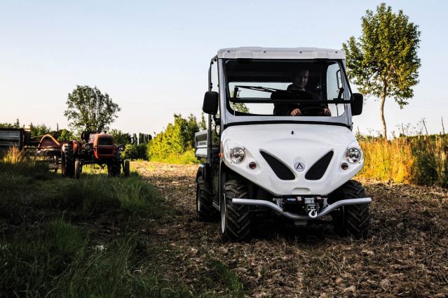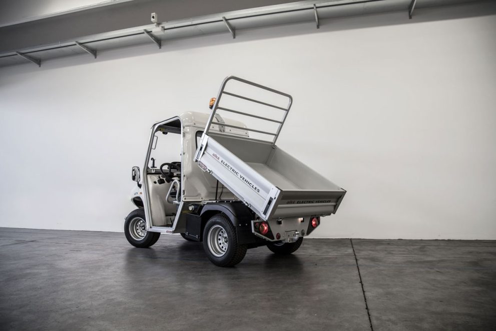 This is the lightest of the ATX models with an intermediate loading bed of 180×123 cm. It has a payload of 635 kg. These electric vehicles have European homologation (category L7e). Among the main features you’ll find: AC electric motor rated at 8 kW, with maximum power of 14 kW, regenerative motor brake, controller Curtis with 385 A.