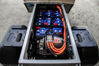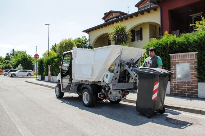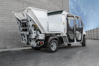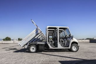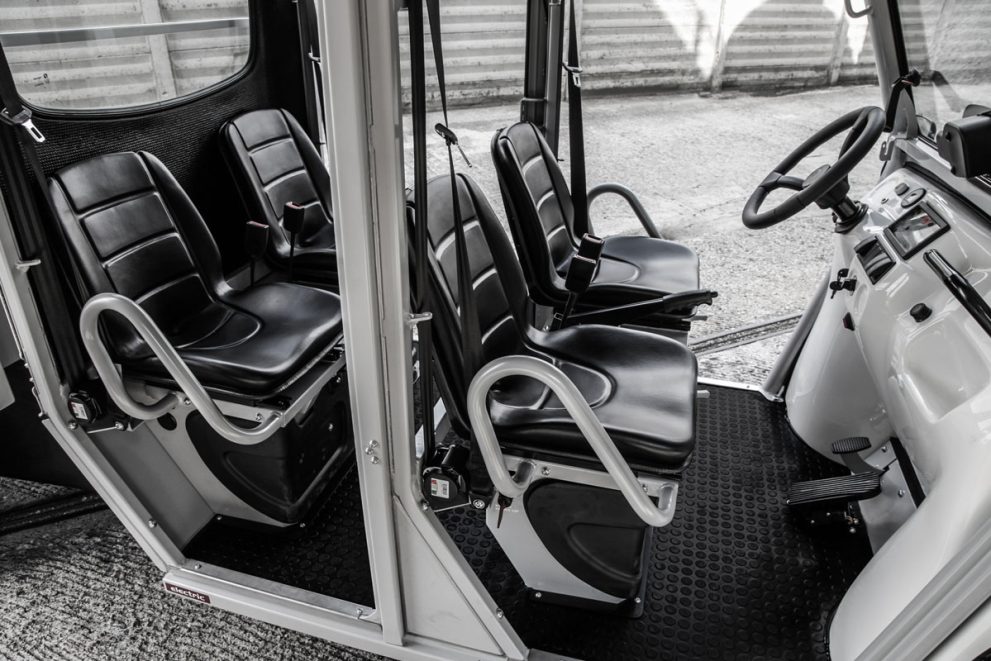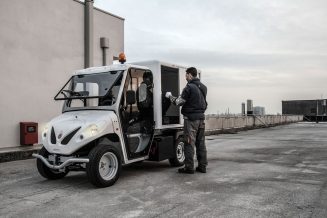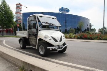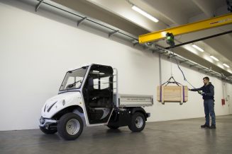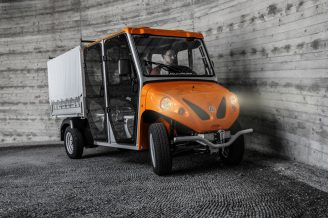 Thanks to its small dimensions and its internal steering radius of only 2.6 meters, it can be used, for example, in warehouses, city centers or streets of small towns. Its is powered by an AC 48 V electric motor with a maximum output of 14 kW. The range is 70 km, with charging costs of about 2 €.
