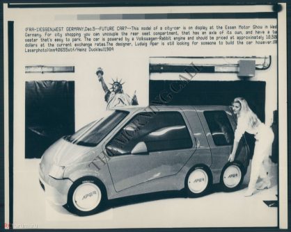 Aper City Compact 3/5 project was presented at the 1985 Essen Motor Show in West Germany. For city shopping you can uncouple the rear seat compartment, that has an axle of its own, and have a two-seater that’s easy to park.