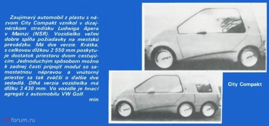 The car is powered by a Volkswagen Rabbit engine and should be priced at approximately 10,500 dollars at the current exchange rate. The design of the unusual microcar was created by Ludwig Aper who spent a lot of time for searching of investment, but didn’t get success.