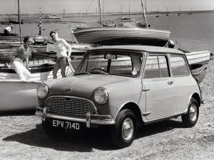Variations included the sportier Cooper, the more luxurious Wolseley Hornet and Riley Elf, the Jeep-like Moke, a van, and a pickup. In 1969 the up-market Clubman was introduced, with an extended nose. Mechanically, the car was gradually refined, but the only significant change was a softer rubber-and-fluid independent suspension, introduced in 1964 and removed in 1971. Later the car failed to compete with the new generation of bigger and more comfortable “superminis,” and sales fell away.