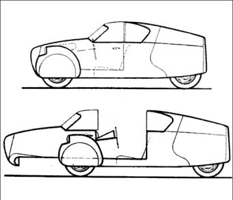 Aerocarene 700, the aircraft-inspired machine, featured highly unusual light alloy bodywork with very unconventional entry for passengers: the whole front of the body slid forwards to allow access to the two seats, which were afforded protection from the elements by Plexiglass panels.