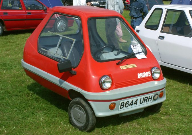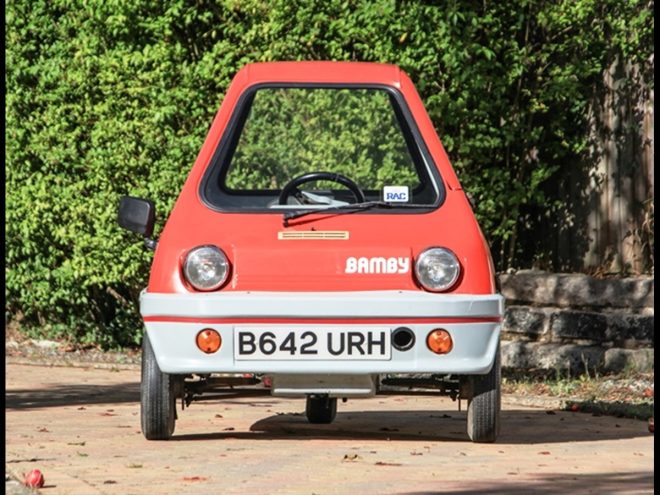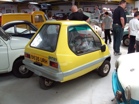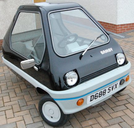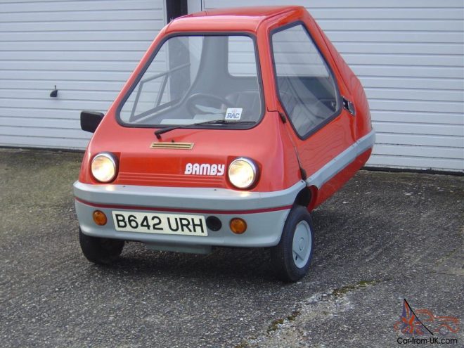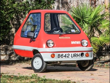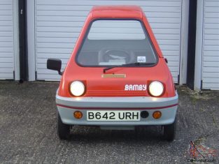Hull-based Alan Evans was a microcar enthusiast who loved his Peel P50 so much that he made a modern equivalent: the Bamby. He founded the company on 18 March 1982, in Leeds in the county of Yorkshire and started production of Bamby in 1983. Like the Peel, it was a single-seater glassfibre-bodied three-wheeler with a 49cc engine. It had front hydraulic discs brakes and three-speed automatic transmission, weighed a mere 107 kg and was claimed to do 100 mpg (2,35 l/100 km).