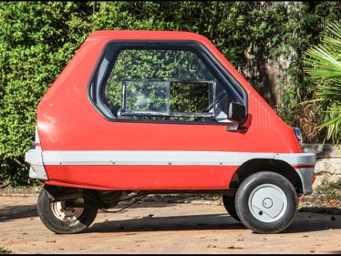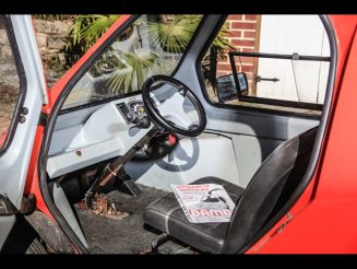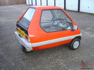 Design changes through its lifetime included a switch from a single gullwing door to a conventionally hinged door, twin headlamps in place of the original single ‘cyclops’ lamp and a conventional steering wheel instead of the initial handlebar. The engine was progressively upgraded from a 49cc Minarelli to Yamaha, then Suzuki moped units.