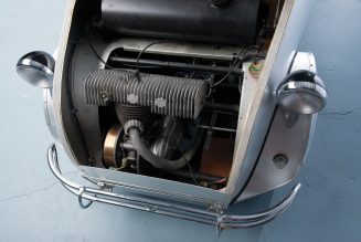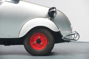 At the end of the Second World War, Voisin returned to the idea of a two-seater buggy and in 1947/48 he designed a new vehicle with an aluminium monocoque body manufactured by Potez and a 125 cc two-stroke Gnome & Rhone engine, which was presented at the 1949 Paris Salon under the name Biscooter.