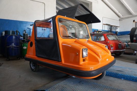 One of the earliest Italian microcars, the BMA Arnica was first seen in 1971. Produced in Alfonsine, Ravenna, it sported engines from 50cc up to 223cc. Its plastic bodywork featured gullwing doors, no less. The vehicle dimensions were approximately 2150 (length) x 1400 (width) mm. The weight was 285 kg.