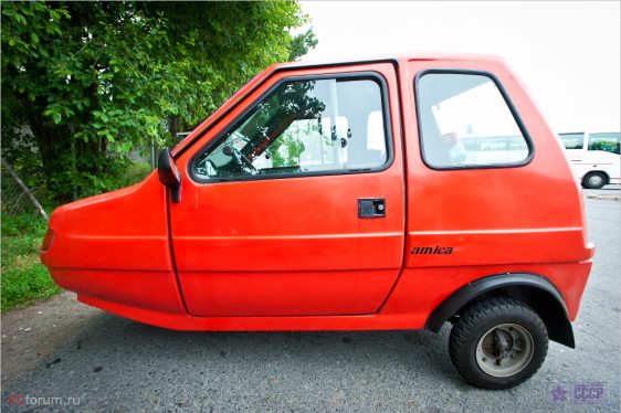 BMA Nuovo Amica was available with three or four wheels. Both models were unified as much as possible and differed only in the front. The design became more modern and no longer resembled an enlarged children’s toy. The exterior was characterized by angular shapes with rectangular headlights and two thick embossings along the sides of the body.