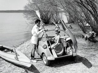 In 1956, the government of the Federal Republic of Germany changed the regulations for motor vehicles. Class IV licenses issued from that time onward could only be used to operate small motorcycles and could no longer be used to operate motor vehicles with a capacity of less than 250 cc. At the same time, the maximum capacity allowed for the Isetta’s tax category was 300 cc. So BMW introduced updated Isetta 300 with a 298 cc 13 hp single-cylinder engine. Later this year the bubble windows were replaced by longer, sliding side windows.