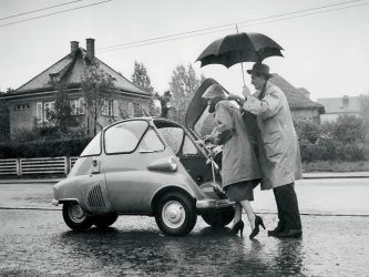 Conscious that its mainstay motorcycle sales were slowing as rising German prosperity in the 1950s encouraged buyers to aspire to the greater comfort and status of four wheels, BMW began combing Europe for solutions. Count Rivolta in Italy was happy to provide the answer in the shape of his egglike Isetta bubble car, which BMW re-engined with its single-cylinder 250cc four-stroke from the R25 bike rated at 9 kW (12 hp) at 5800 rpm.