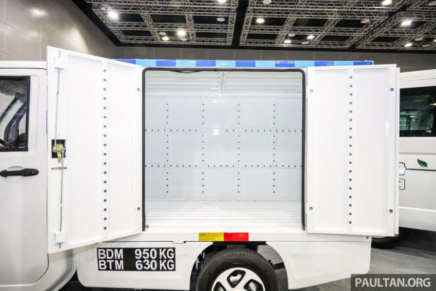 Versatility is where the design really comes into play. The rear section can be configured in multiple ways, including as a box van, pickup, garbage truck, street sweeper, or even a coffee truck. Depending on the setup, cargo volume can reach up to 2.8 cubic meters, while maximum payload is rated at 630 kg.