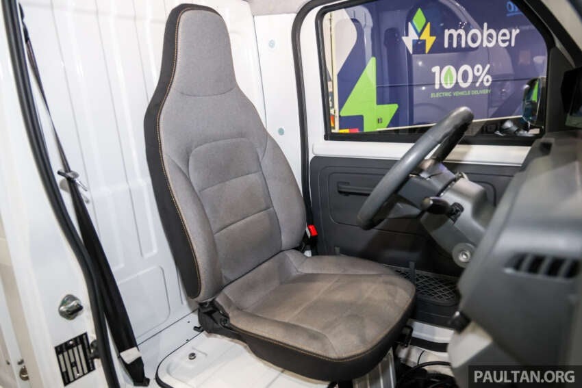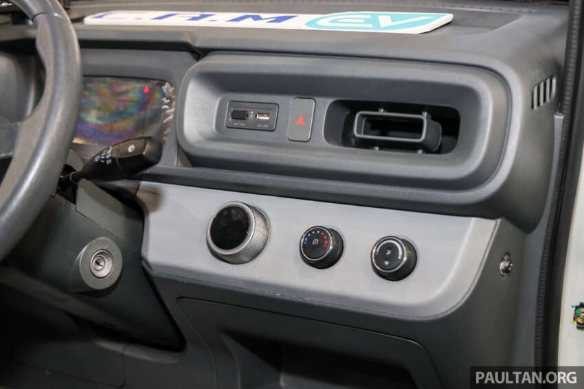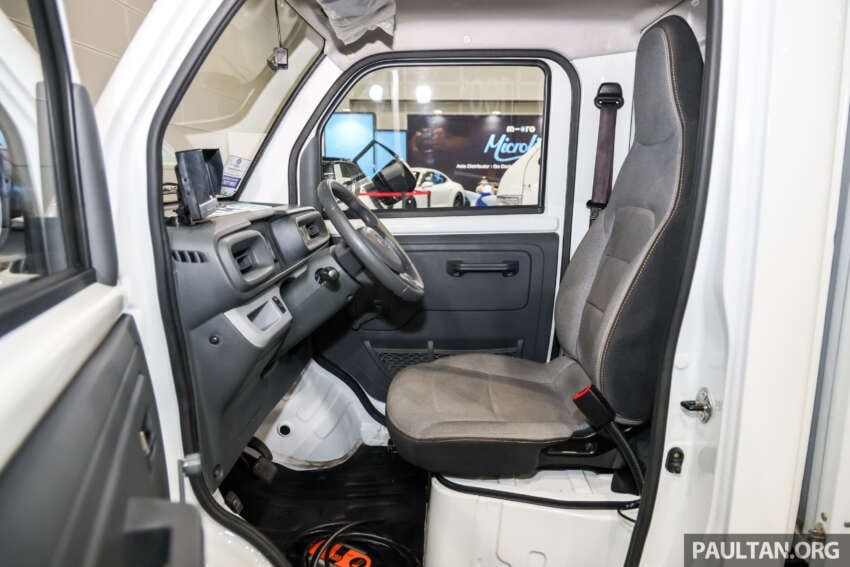 Measuring just 3,695 mm in length and only 1,220 mm in width, the Microvan is extremely narrow. The interior reflects its purpose, with a central driving position, a single seat, a bare-bones dashboard, and extensive use of hard plastics aimed squarely at durability rather than comfort.