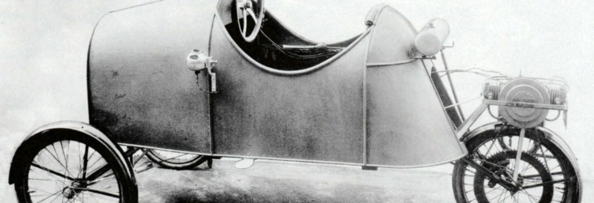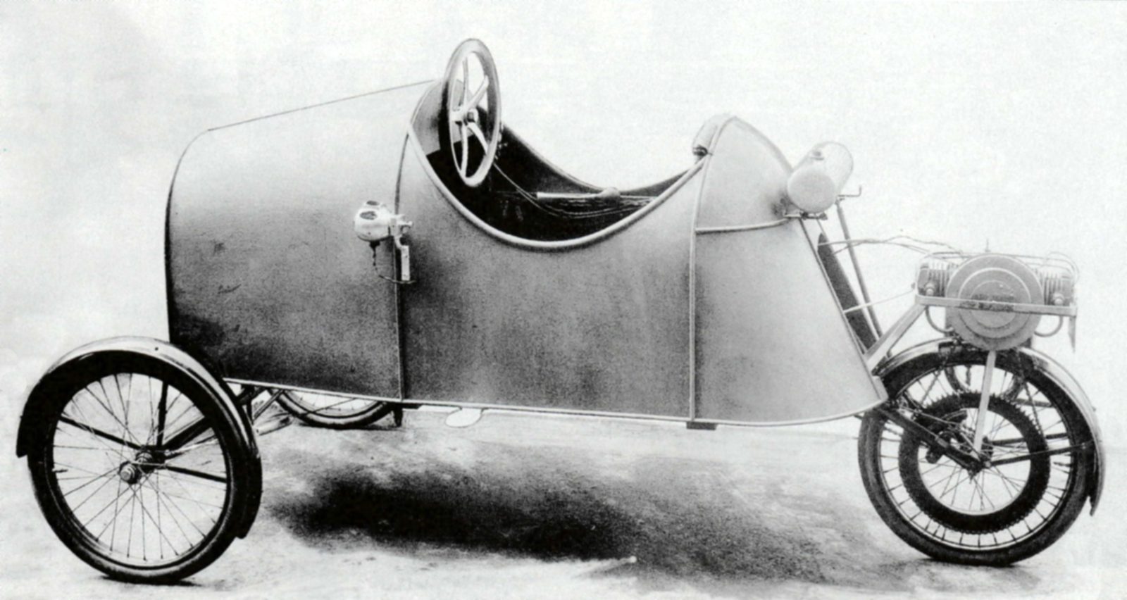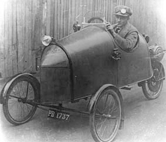 Its design could hardly be simpler — powered by a 200 cc two-stroke Johnson motorwheel and lacking even a reverse gear.