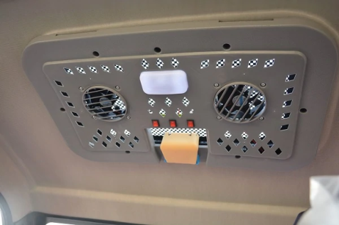 It also resembles a Mini inside, thanks to its 9-inch touchscreen display housed inside a circular center console. Another digital screen is used as a dashboard. It has a “manual” air conditioner, aka a roof fan, a backup camera, AM/FM Radio/USB Phone Connection, spare tire and windshield wipers.