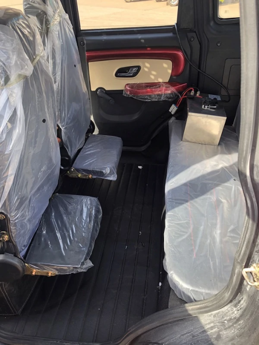The electric car weighs only 250 kg and can travel 50 kilometers on a single charge. The maximum speed does not exceed 45 km/h. Power is supplied from a 60v / 80AH lithium battery, and it will take 6-8 hours to fully charge from a regular outlet.