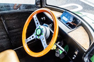 The car was a one-off show model built for a presentation, so it doesn’t have door mirrors or windshield wipers, and he tried to keep it as original as possible, so it is almost all original except for the wheel caps.