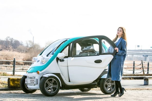 The Korean electric car reaches just over 2 meters in length and looks like a small capsule on wheels. The body is made of plastic, so the weight of the car is only 430 kg.