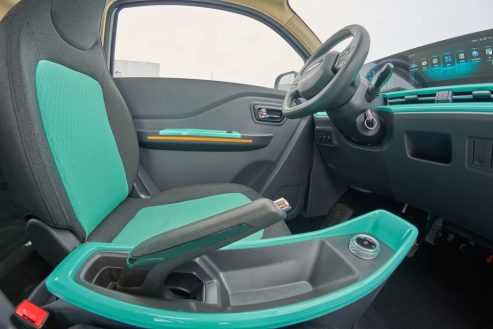 Measuring 3,060 mm in length, 1,480 mm in width and 1,585 mm in height, the car, which weighs only 600 kg without battery, is equipped with a 25 kW electric motor that gets it up to 100 km/h.