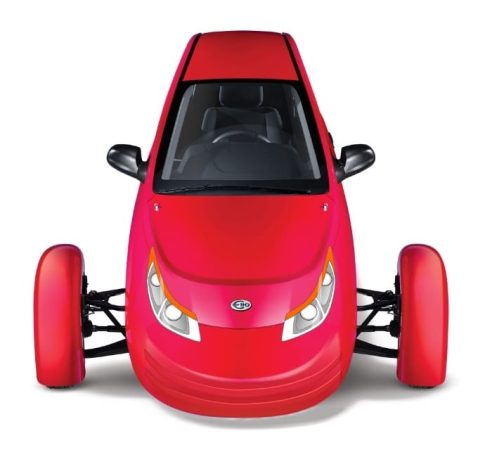 The three-wheeled electric car is shown in renders. It differs from the gasoline Elio-G only in the absence of a grill on the nose. Dimensions: 4077 × 1918 × 1377 mm, wheelbase – 2794, clearance – 146 mm. There are 135/80 R15 tires in the front, 175/65 R15 tires in the back. There are no other characteristics yet.