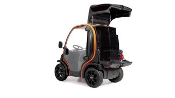 The basic version, which can be driven from the age of 14, has no doors, but has a small lockable luggage compartment with a capacity of 41 liters and a lithium-ion battery that provides up to 55 kilometers of travel without recharging. The battery is removable: it can be removed from the car and charged from a normal outlet at home or in the office.