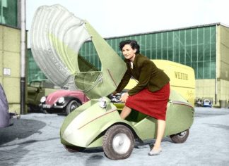 In 1948, Fritz Fend in Rosenheim, Germany created a three-wheeled vehicle Fend Flitzer. Fend, a former Luftwaffe technical officer and aeronautical engineer, created an invalid carriage with a front wheel steered by handlebars and fueled by a handlebar-controlled mechanism. Following that, Fend upgraded the tricycle by coupling it with a 38 cc Victoria proprietary motor used for motorizing bicycles.