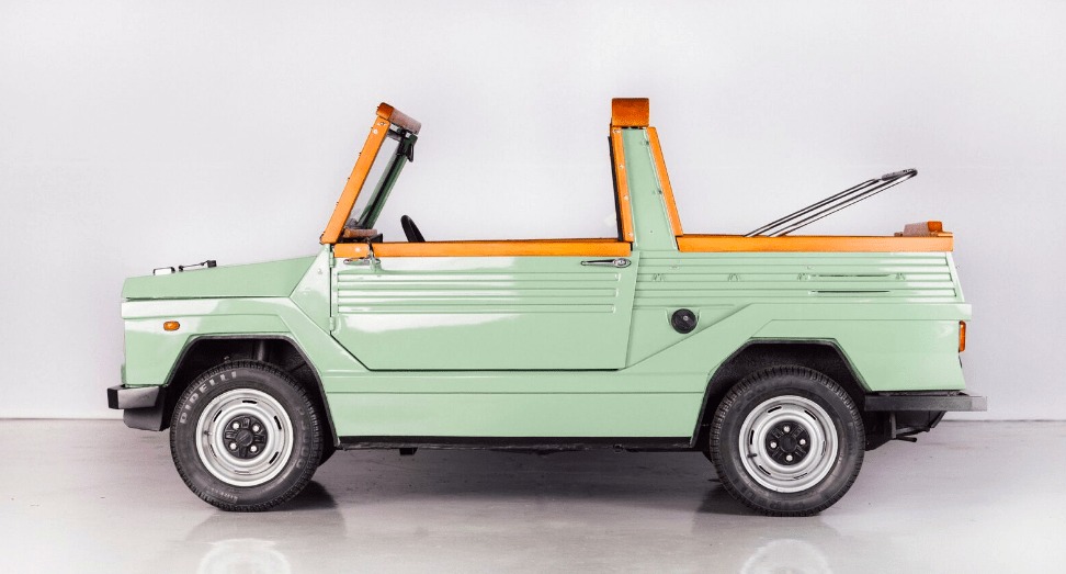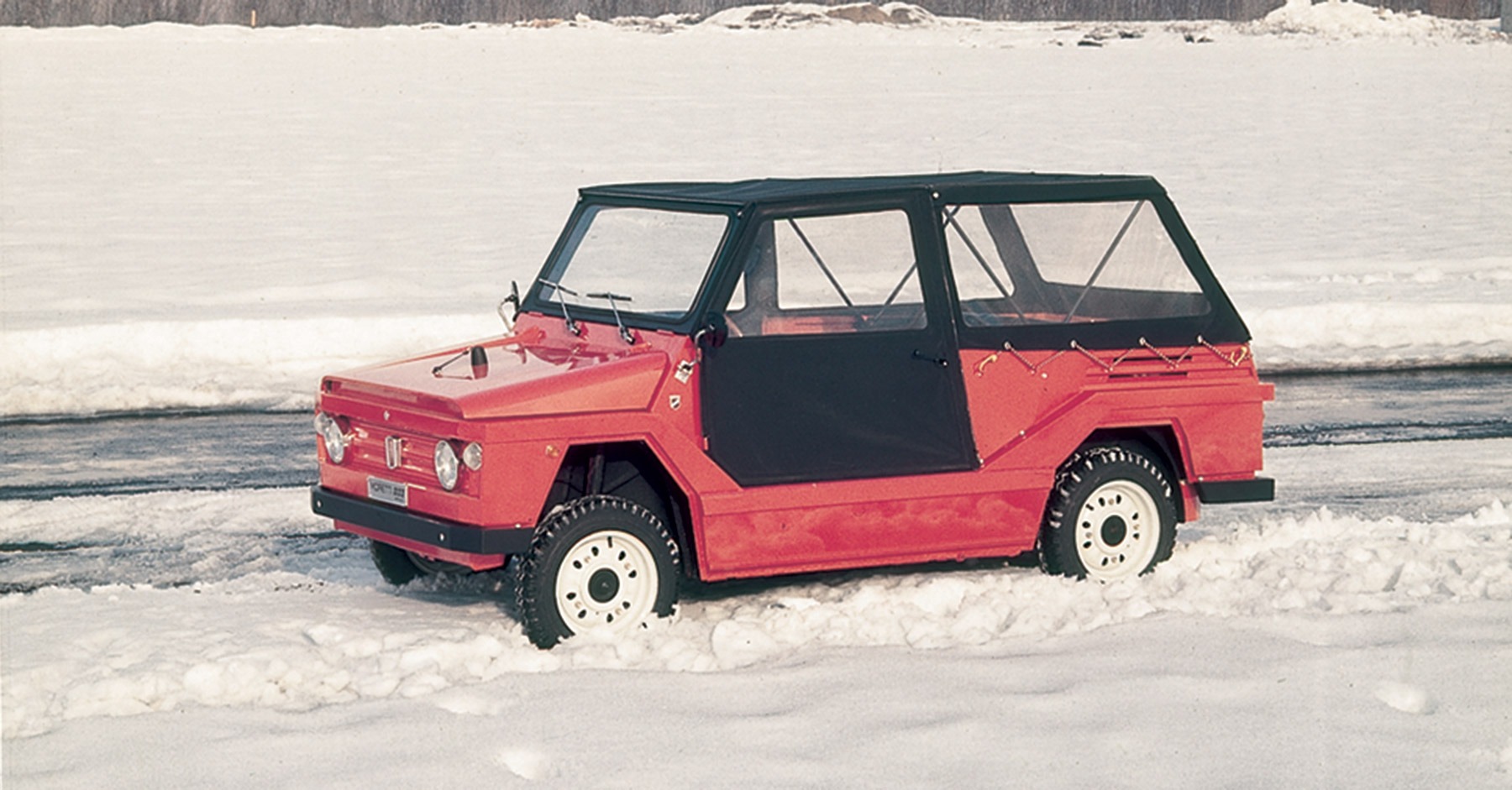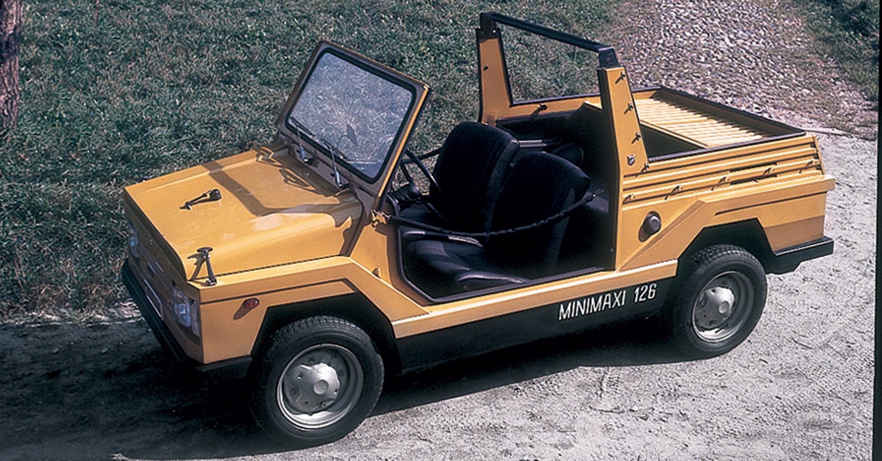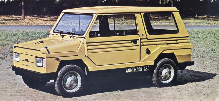 From 1973 onward, the 126-based Minimaxi entered the lineup. Its design followed a simple, jeep-like concept with a folding front windscreen, no fixed roof, and no doors as standard.