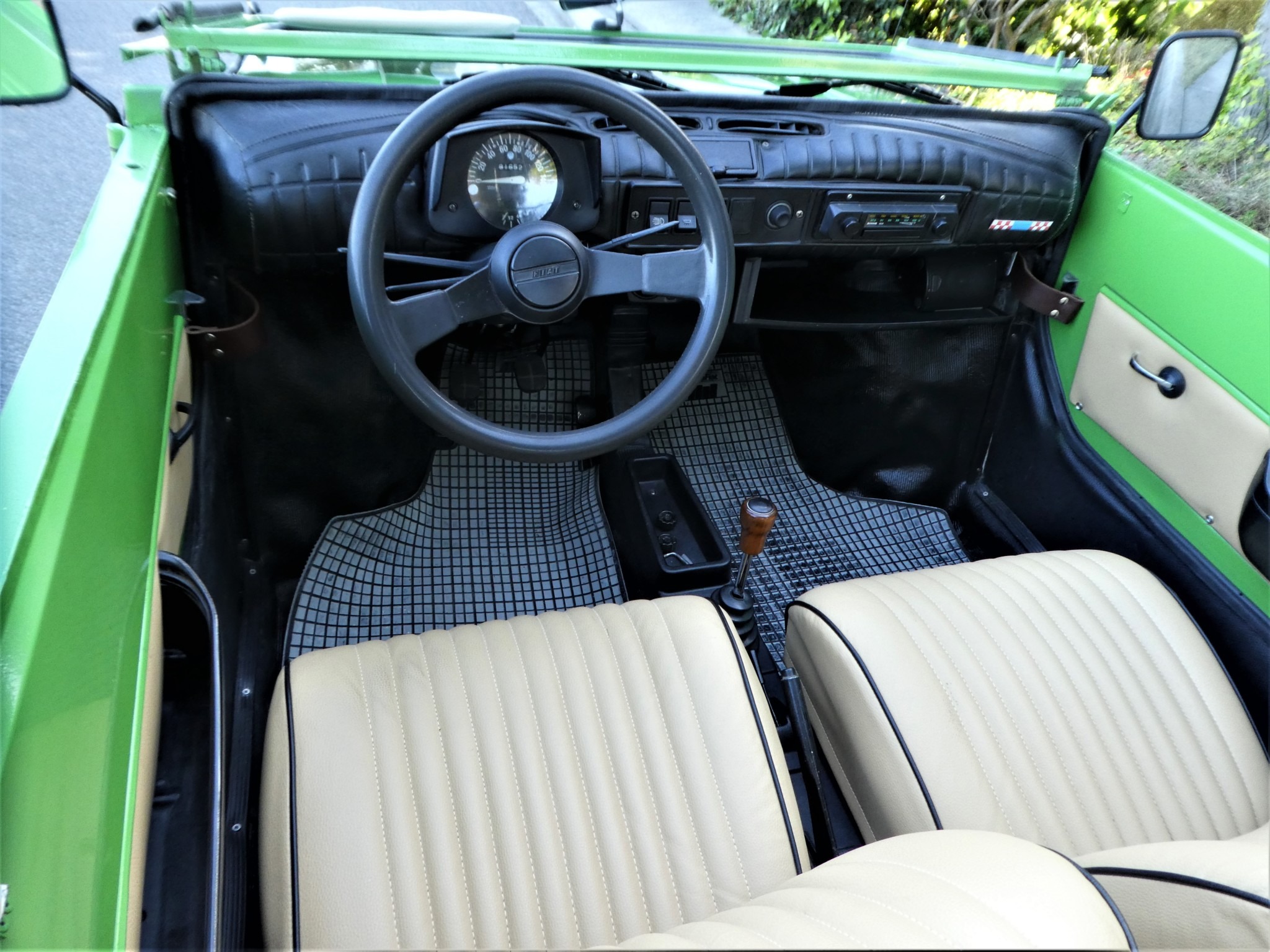 Buyers who needed more protection could add a canvas top and matching canvas doors. The overall look changed very little over the years, with the most noticeable updates being the addition of a rollover hoop behind the front seats and the switch from the Fiat 500’s round headlights to the 126’s square units.