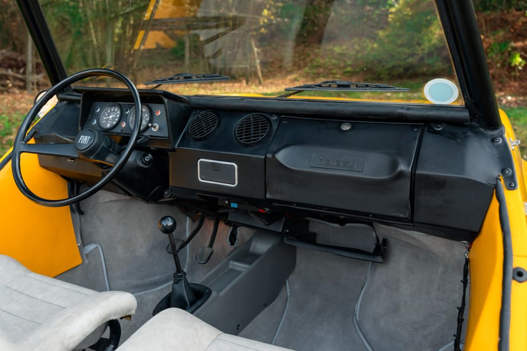 Inside, the approach was deliberately austere. Upholstery was minimal, materials were selected for durability and weather tolerance, and refinement took a back seat to ease of cleaning and casual use. The Holiday was never designed as a mainstream product; instead, it was assembled in small numbers, largely by hand, and aimed at buyers looking for a secondary vehicle for holidays, hotels, or private estates.