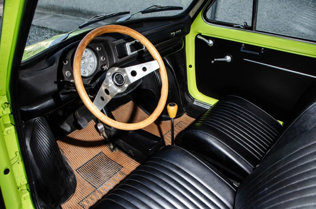 Incomplete Fiat 500s were shipped directly from the Fiat factory to Lombardi’s workshop in Vercelli, where they were finished with custom components designed specifically for the model.