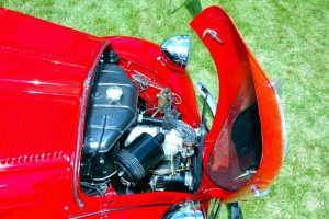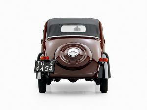 Apart from the beaten aluminum torpedo-like bodywork, with its gaping air intake, incredible fish tail, disc wheels, and tiny off-set turret, the usually feeble Topolino engine was heavily modified. To ensure it met 31ci (500cc) class rules (the standard Topolino had a 35ci (569cc) engine, sleeves were fitted inside the cylinder, and a new crankshaft gave a shorter stroke to reduce capacity to 30.45ci (499.05cc). Power output was boosted using a Cozette carburetor and supercharger, the side valves replaced with a Siata overhead-valve conversion, and the car was cooled with a front-mounted radiator. Considering the basic Fiat could manage just 53mph (85kph), Cecchini worked wonders turning it into a 90mph (145kph) catapult.