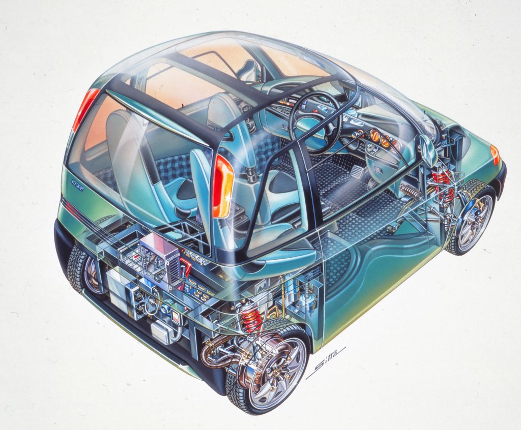 Its combination of in‑wheel motors, long‑range battery, ultra‑compact footprint, and innovative three‑seat layout was far ahead of mainstream market expectations, and Fiat ultimately judged that production costs and likely pricing would be too high for the early‑1990s buyer.