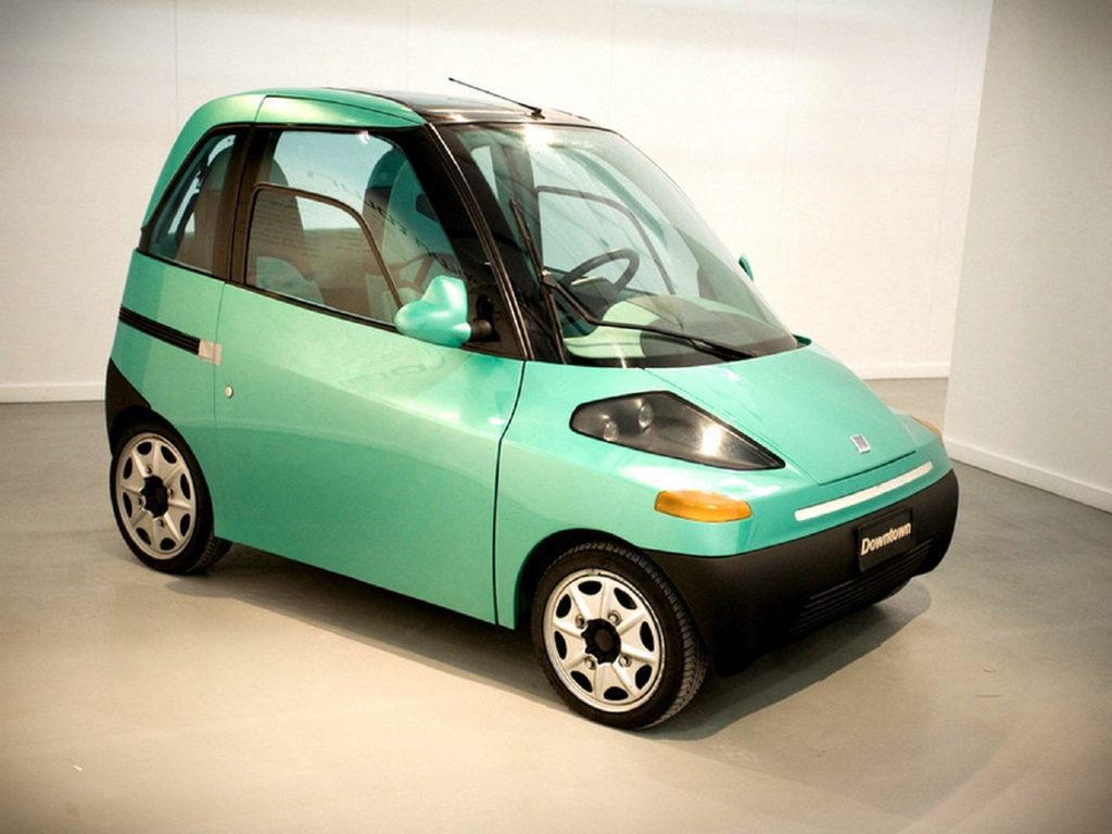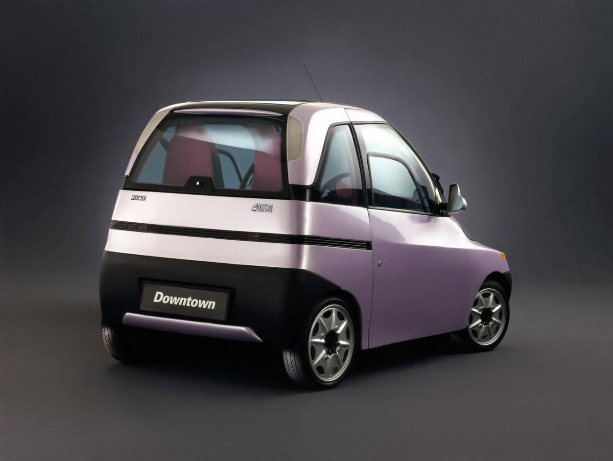 Fiat Downtown was a radical three‑seat electric city‑car concept unveiled in 1993 that anticipated today’s urban EVs with its compact size, in‑wheel motors, and long range for city use.