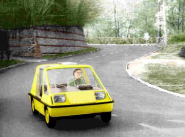 According to the designer, the basic concept was to “dress” a person (approximately 75 kg or 165.35 lbs) and minimal luggage with a car for essentially urban use. The car was designed to be very small, with dimensions of about 2.40 m (7’10.5″) long, 1.70 m (5’7″) wide, and 1.40 m (4’7.2″) high, and weighing about 400 kg (881.9 lbs).